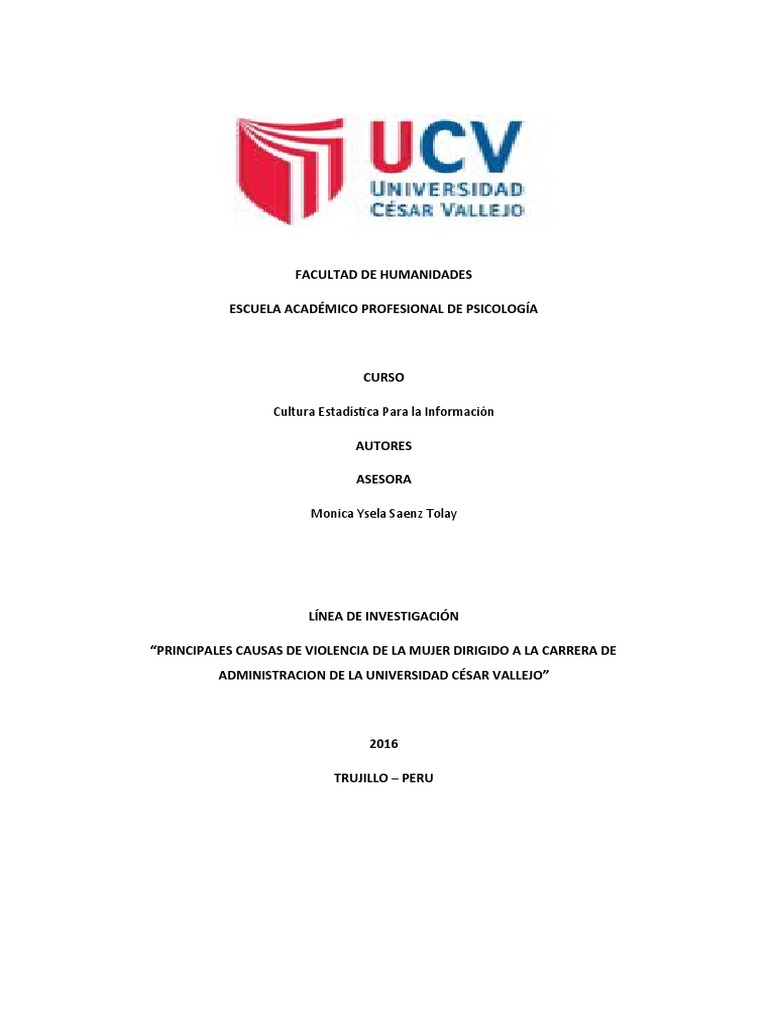 “PRINCIPALES CAUSAS DE VIOLENCIA DE LA MUJER DIRIGIDO A LA CARRERA DE