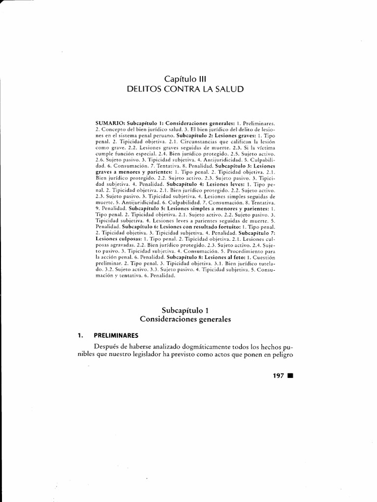 dad. 6. Consumación. 7. Tentativa. 8. Penalidad. Subcapítulo 3: Lesiones