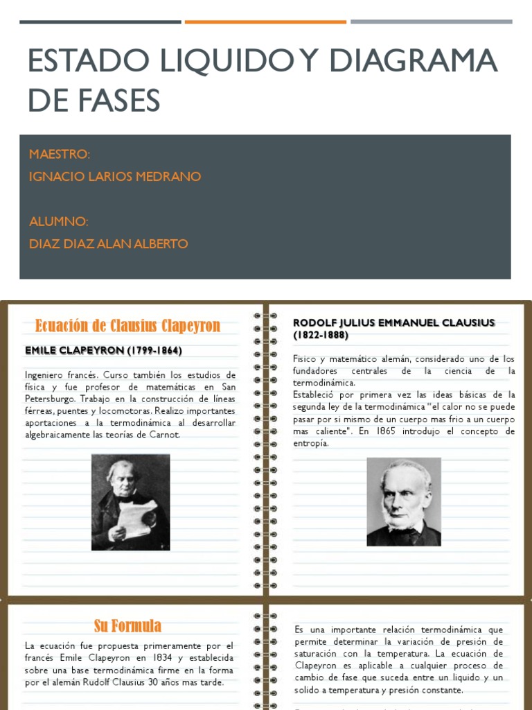 por el alemán Rudolf Clausius 30 años mas tarde. cambio de fase que suceda entre un liquido y un