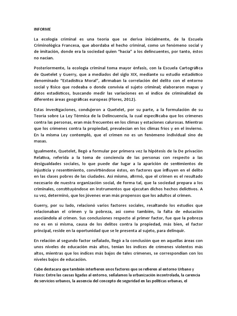 La ecología criminal es una teoría que se deriva inicialmente, de la Escuela