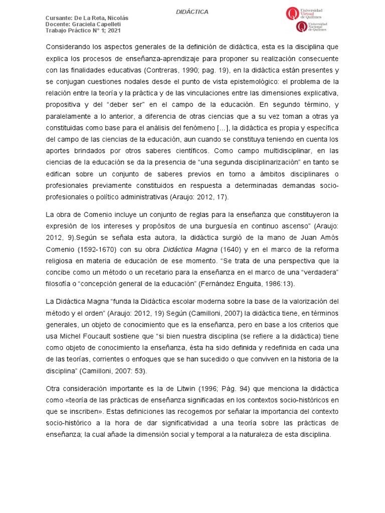 método y el orden” (Araujo: 2012, 19) Según (Camilloni, 2007) la didáctica tiene, en términos