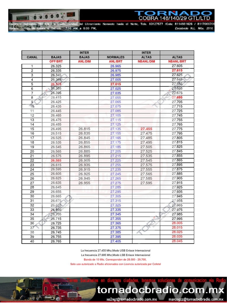 La frecuencia 27.695 Mhz,Modo LSB Enlace Internacional