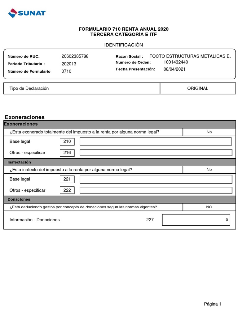 Número de Formulario 0710 Fecha Presentación: 08/04/2021