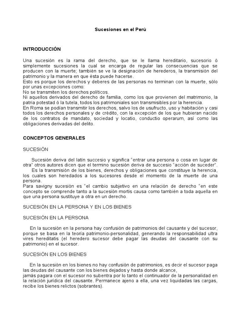 Sucesiones en el Perú: Conceptos y Clases