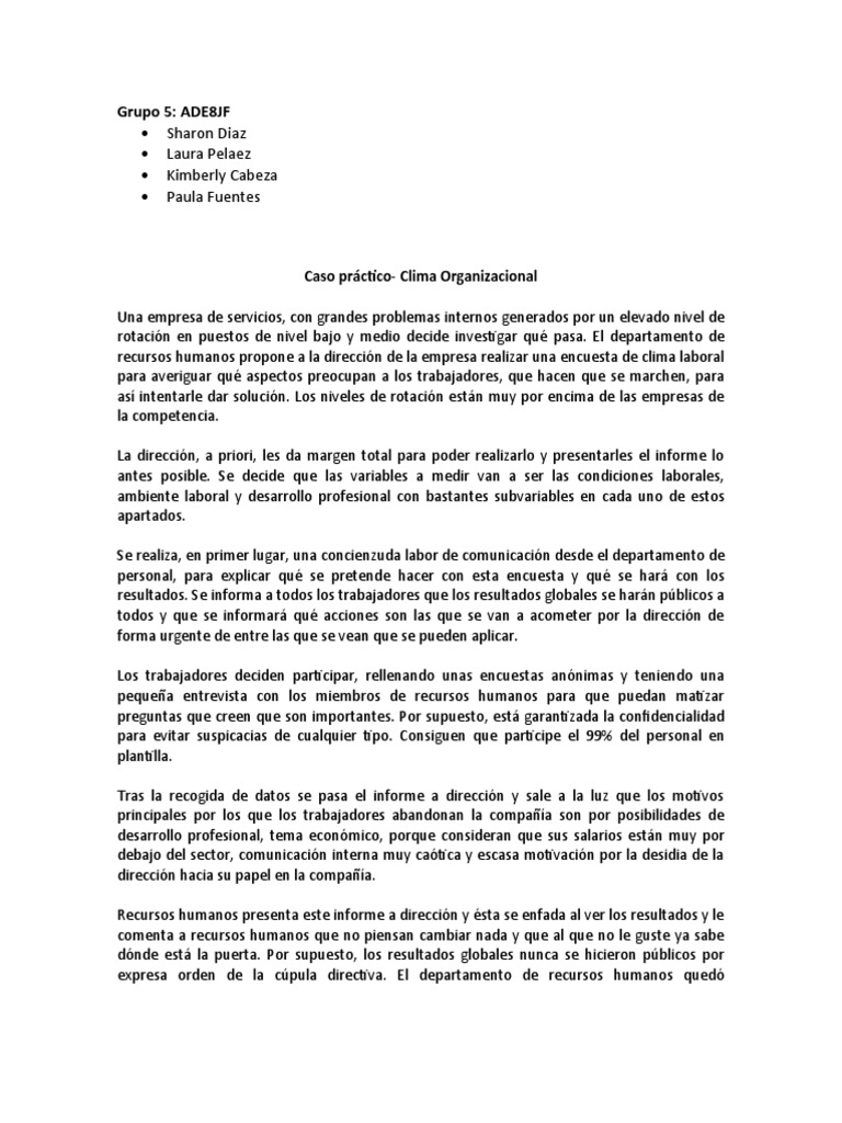 recursos humanos propone a la dirección de la empresa realizar una encuesta de clima laboral