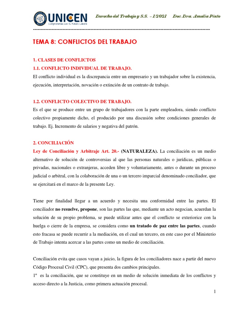 Derecho del Trabajo y S.S. – 1/2021 Doc. Dra. Amalia Pinto