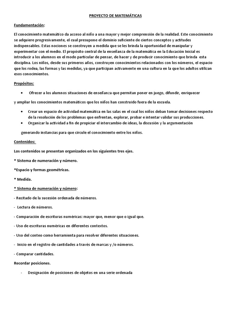 experimentar con el medio. El propósito central de la enseñanza de la matemática en la Educación Inicial es