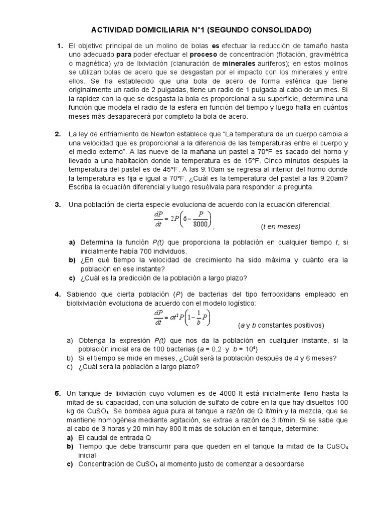 5. Un tanque de lixiviación cuyo volumen es de 4000 lt está inicialmente lleno hasta la