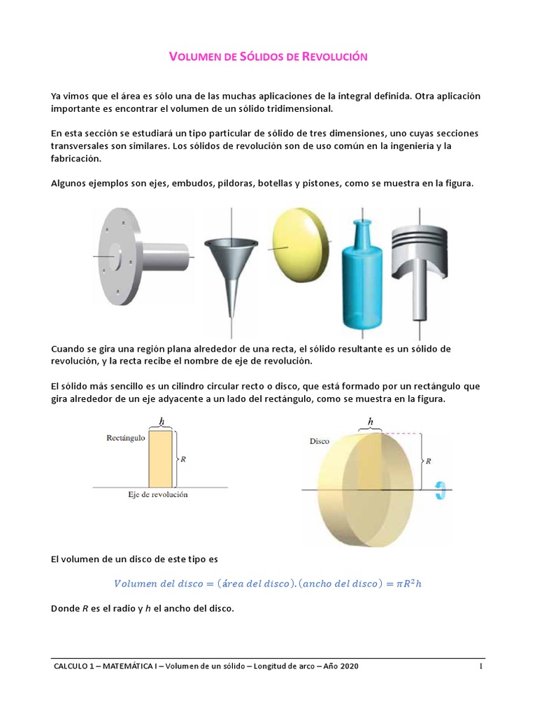 CALCULO 1 – MATEMÁTICA I – Volumen de un sólido – Longitud de arco – Año 2020 1