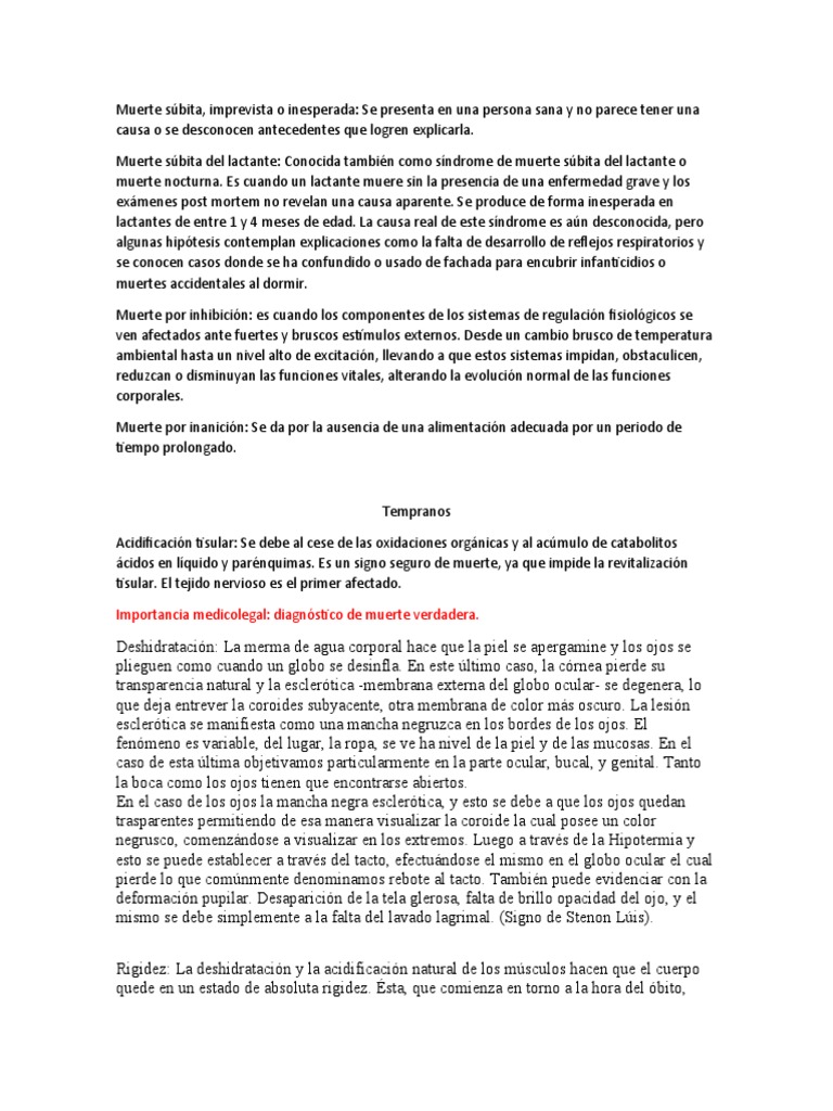 a) Si el cuerpo aún está caliente, no hay rigidez, no hay livideces, la muerte fue reciente y data