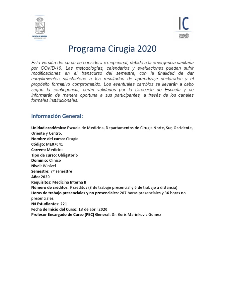 Profesor Encargado de Curso (PEC) General: Dr. Boris Marinkovic Gómez