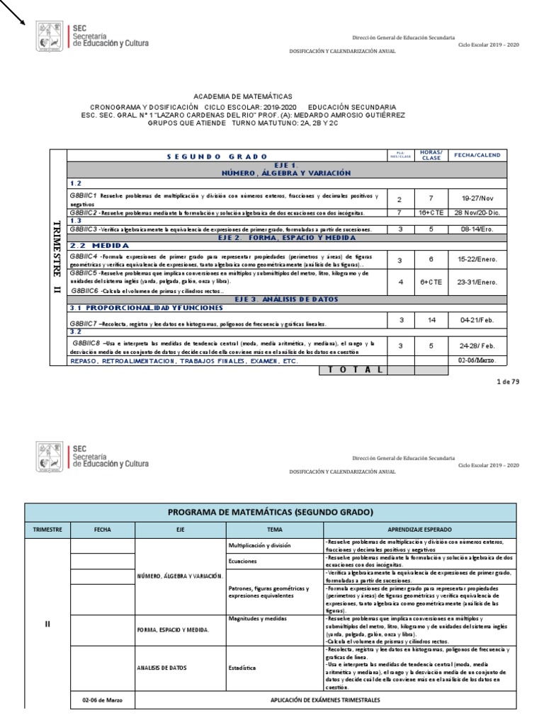 CRONOGRAMA Y DOSIFICACIÓN CICLO ESCOLAR: 2019-2020 EDUCACIÓN SECUNDARIA