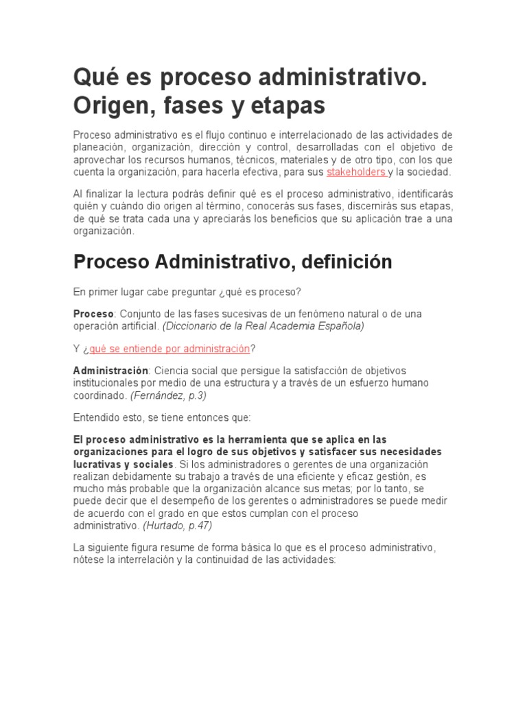 Lo anterior implica definir la administración como un proceso que, como tal,