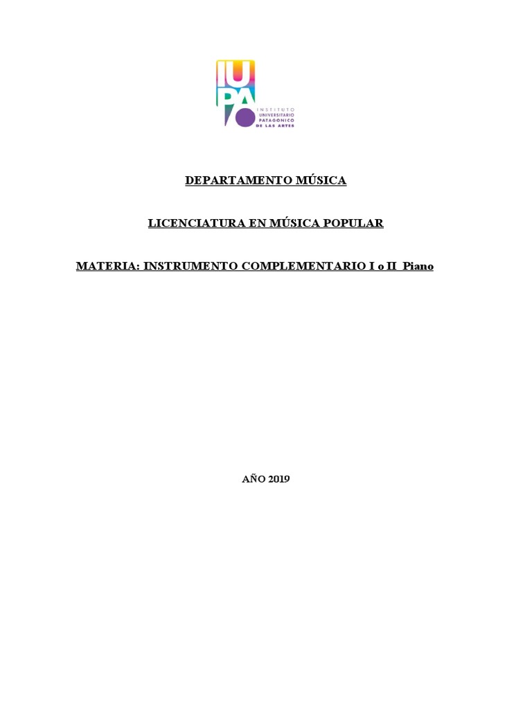 MATERIA: INSTRUMENTO COMPLEMENTARIO I o II Piano