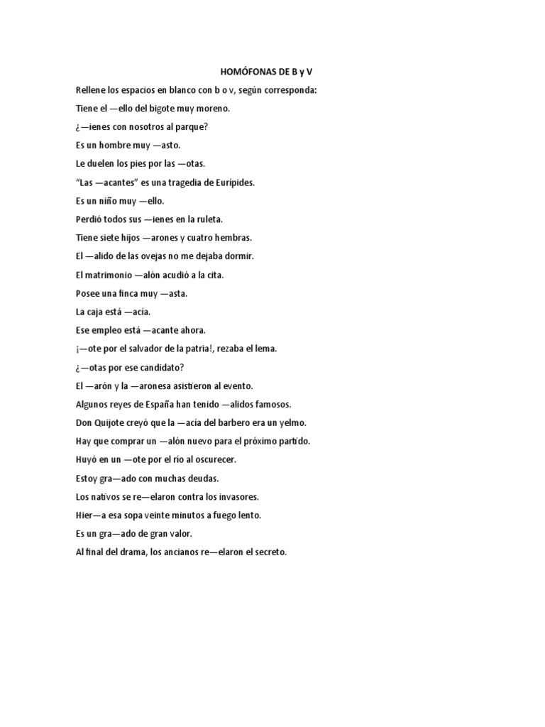 Rellene los espacios en blanco con b o v, según corresponda: