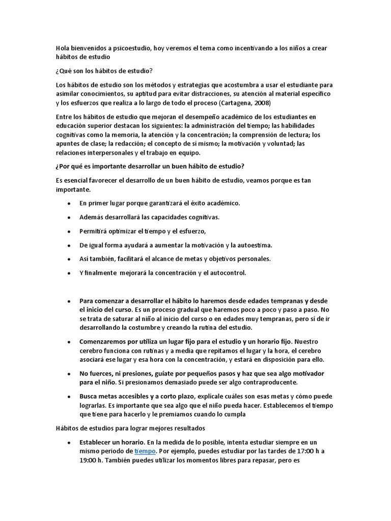 Los hábitos de estudio son los métodos y estrategias que acostumbra a usar el estudiante para