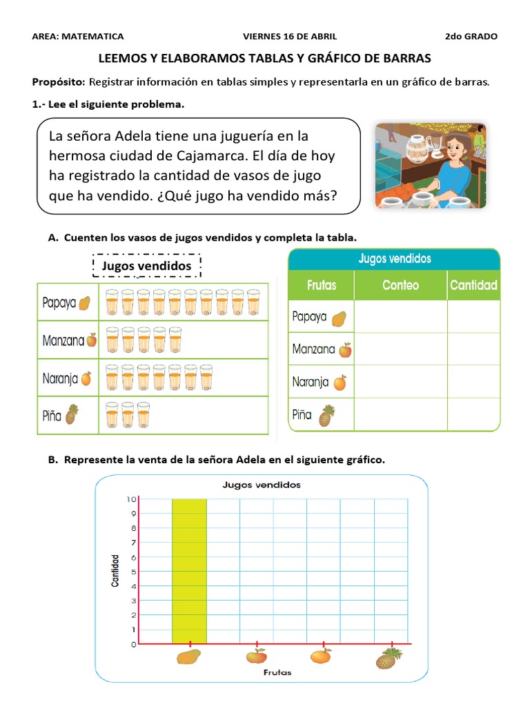Propósito: Registrar información en tablas simples y representarla en un gráfico de barras.