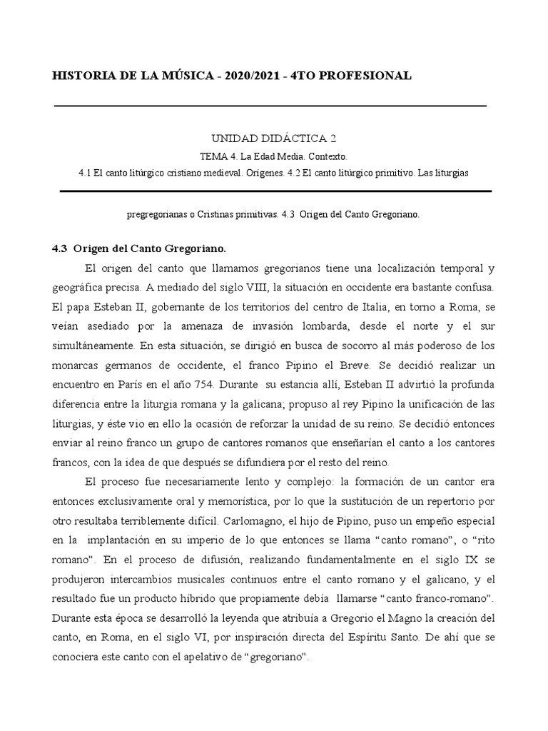 pregregorianas o Cristinas primitivas. 4.3 Origen del Canto Gregoriano.