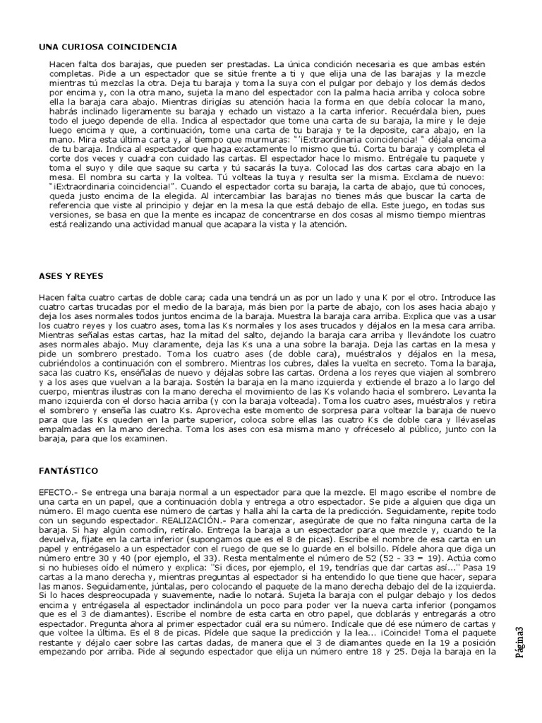 cartas más sobre la baraja. En ese caso, al levantar la baraja de. la mesa, deja dos cartas "olvidadas",