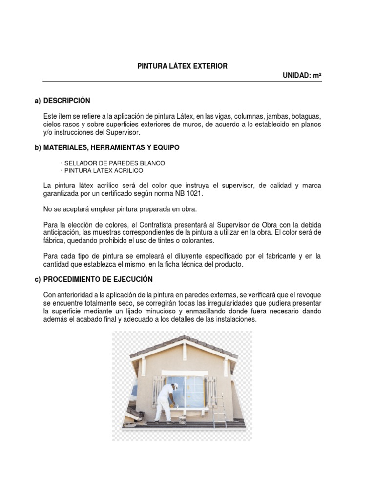 Este ítem se refiere a la aplicación de pintura Látex, en las vigas, columnas, jambas, botaguas,