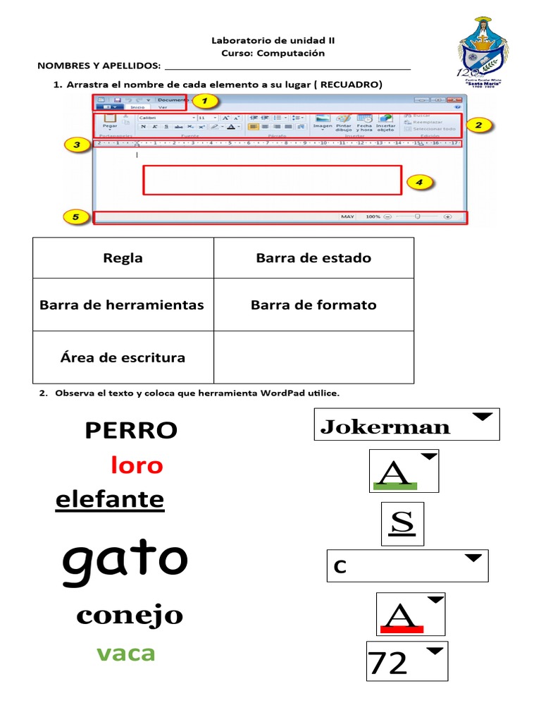 2. Observa el texto y coloca que herramienta WordPad utilice.