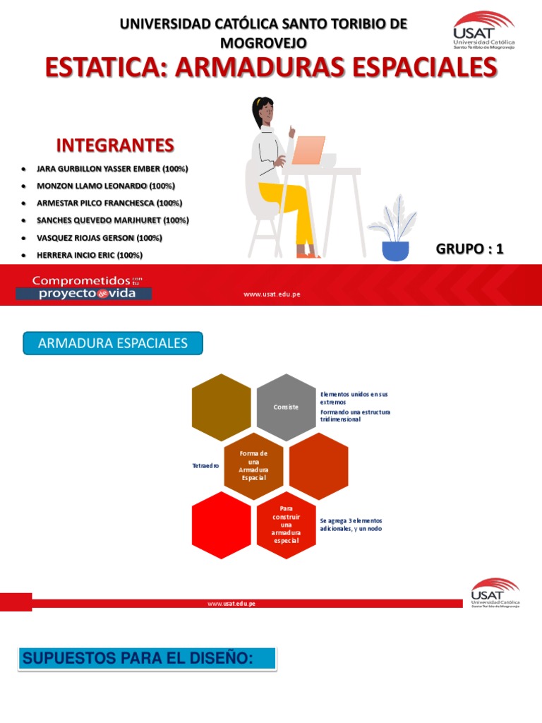 La armadura que se muestra consta de seis miembros y esta sostenida por un eslabón