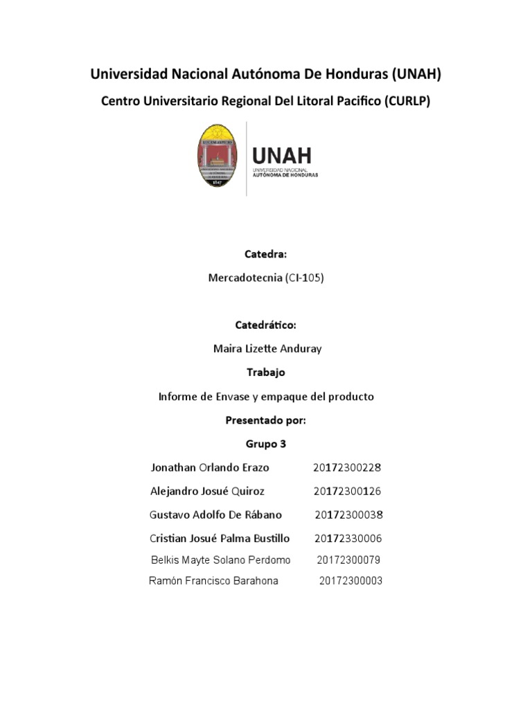 Informe de Envase y empaque del producto