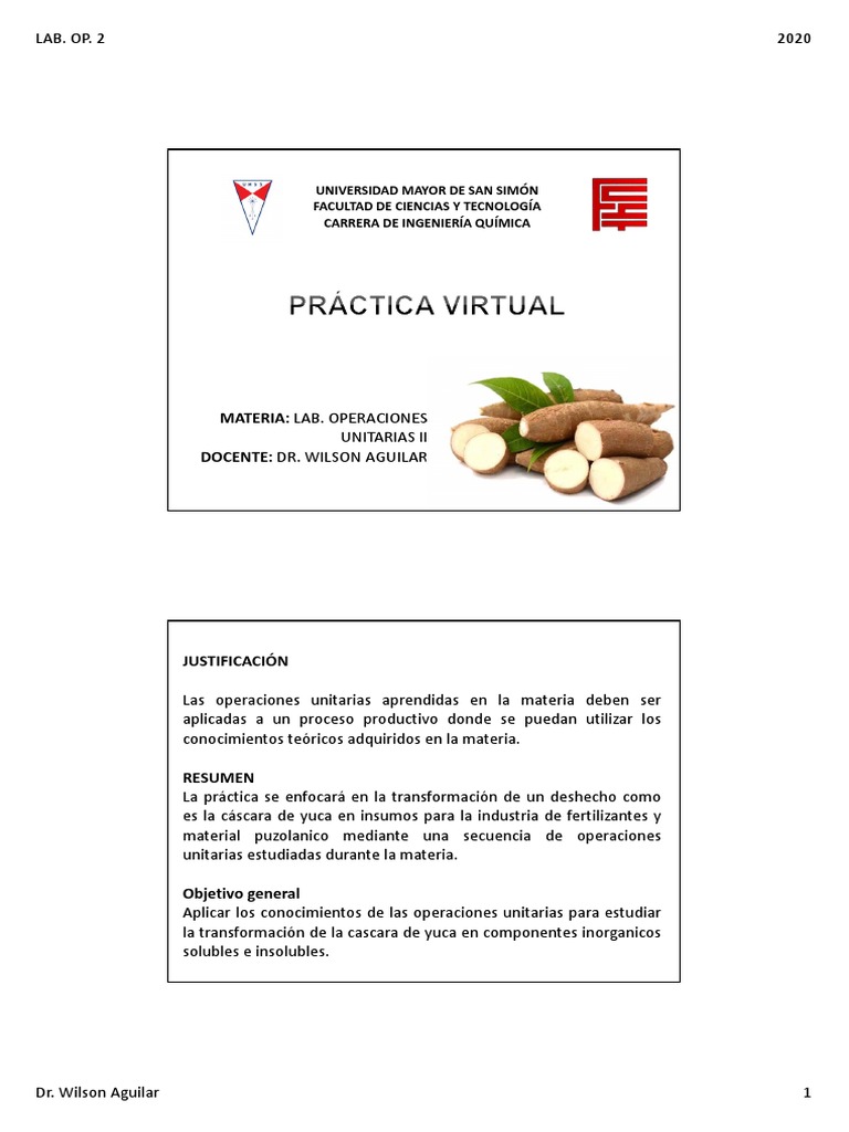 Las operaciones unitarias aprendidas en la materia deben ser