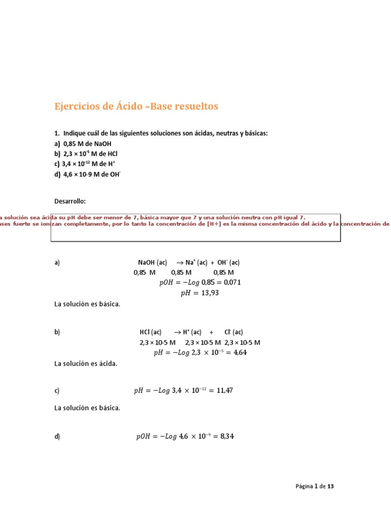 1. Indique cuál de las siguientes soluciones son ácidas, neutras y básicas: