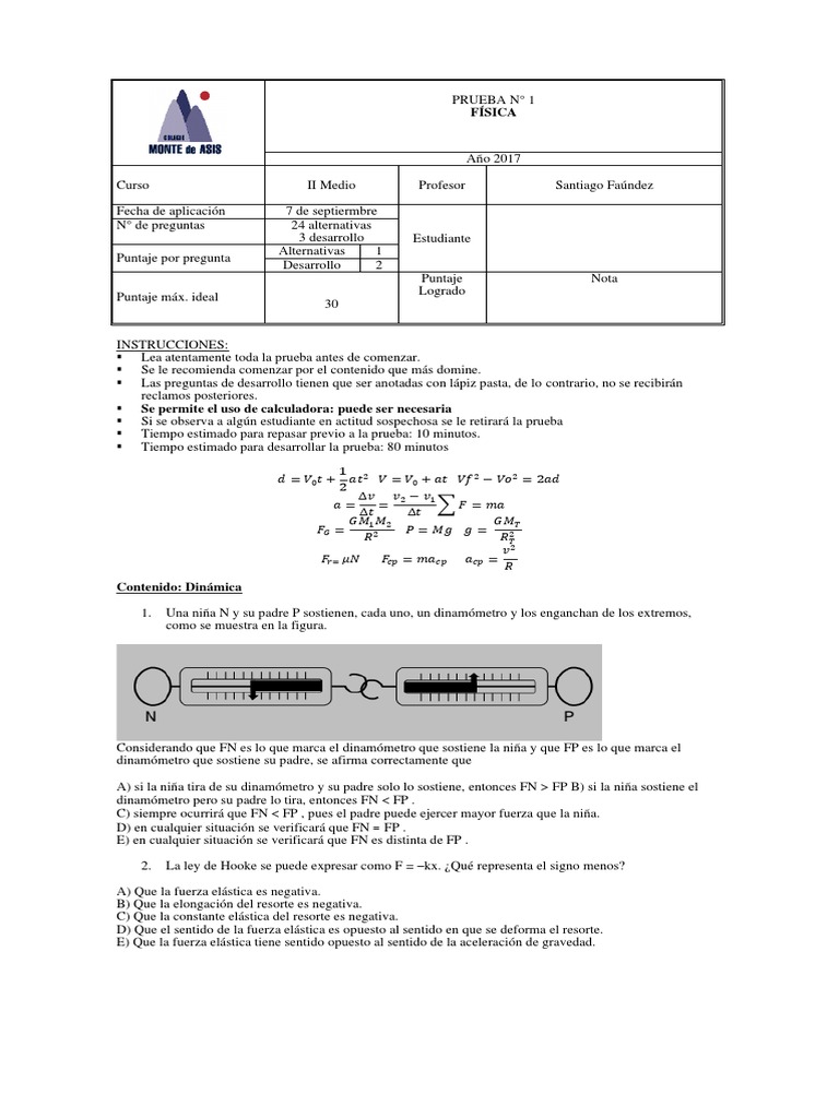 1. Una niña N y su padre P sostienen, cada uno, un dinamómetro y los enganchan de los extremos,