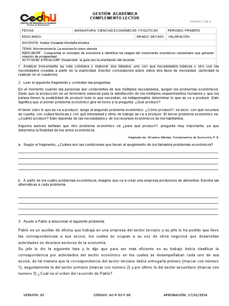 FECHA: ASIGNATURA: CIENCIAS ECONÓMICAS Y POLÍTICAS PERIODO: PRIMERO