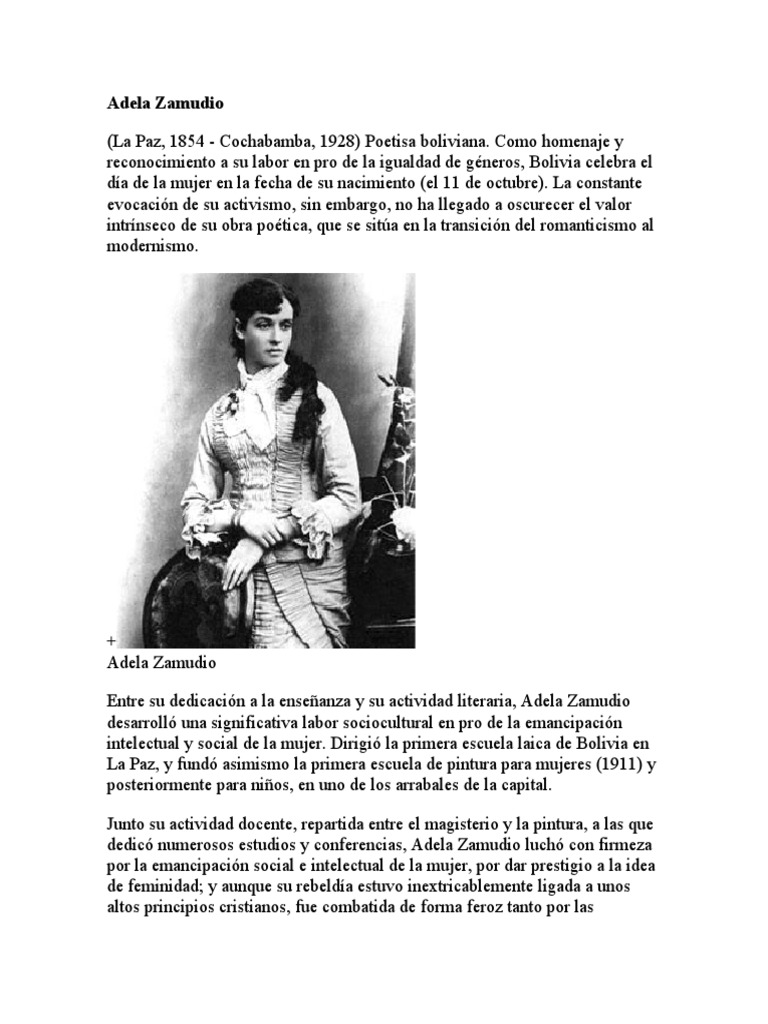 intelectual y social de la mujer. Dirigió la primera escuela laica de Bolivia en