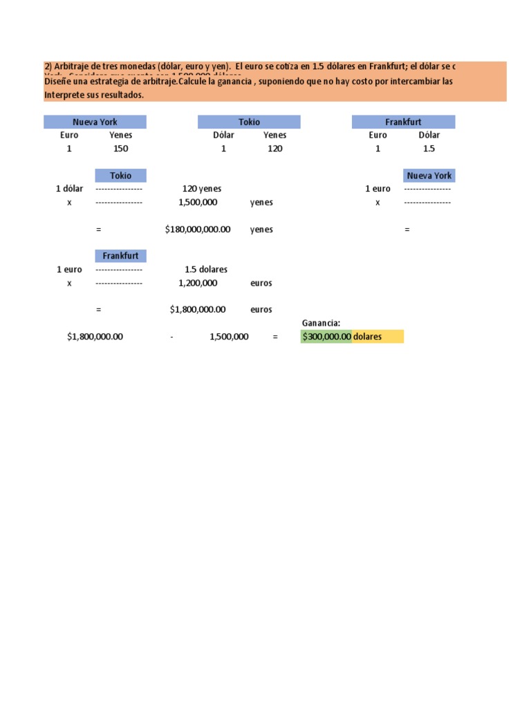 2) Arbitraje de tres monedas (dólar, euro y yen). El euro se cotiza en 1.