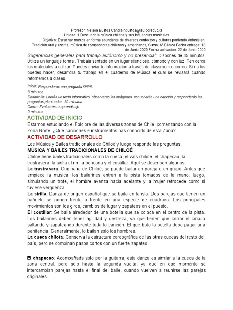 Lee Música y Bailes tradicionales de Chiloé y luego responde las preguntas.