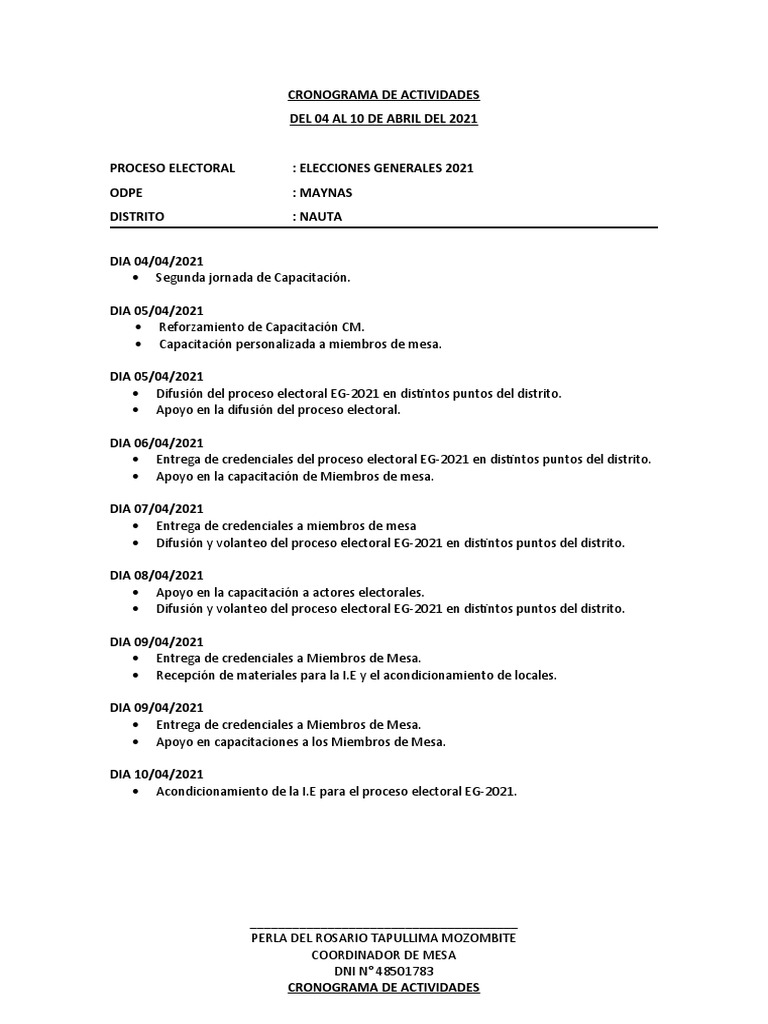 CRONOGRAMA DE ACTIVIDADES