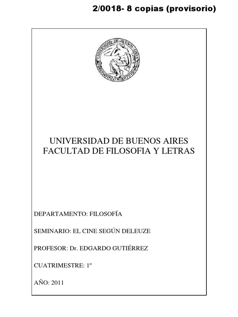tema: La imagen-movimiento y La imagen-tiempo, se explicitan las peculiaridades de esos