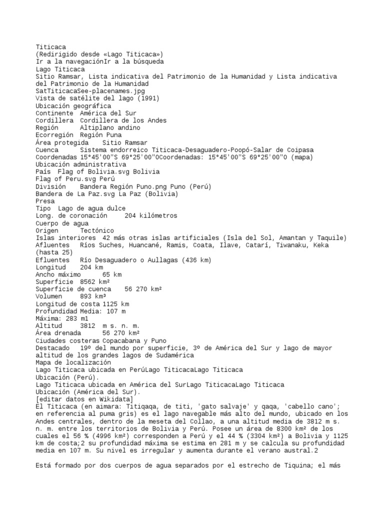 Proyectos WikimediaWd Datos: Q35342Commonscat Multimedia: Lake TiticacaWikivoyage