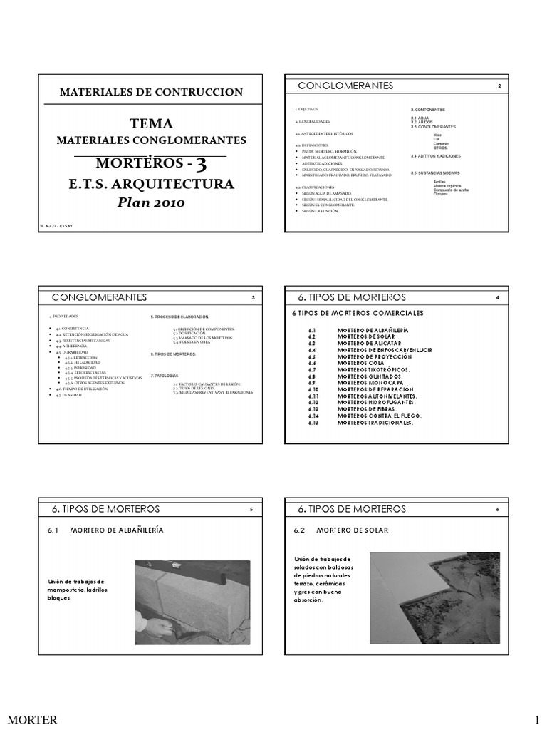 CONGLOMERANTES 3 6. TIPOS DE MORTEROS 4