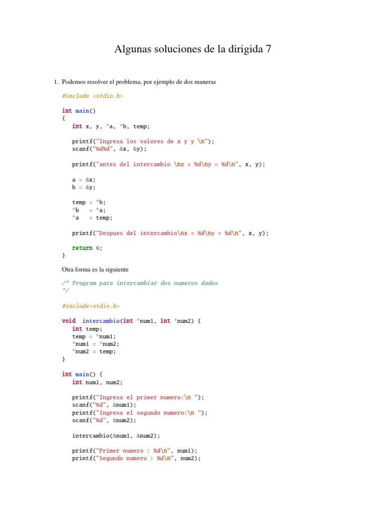 Algunas soluciones de la dirigida 7
