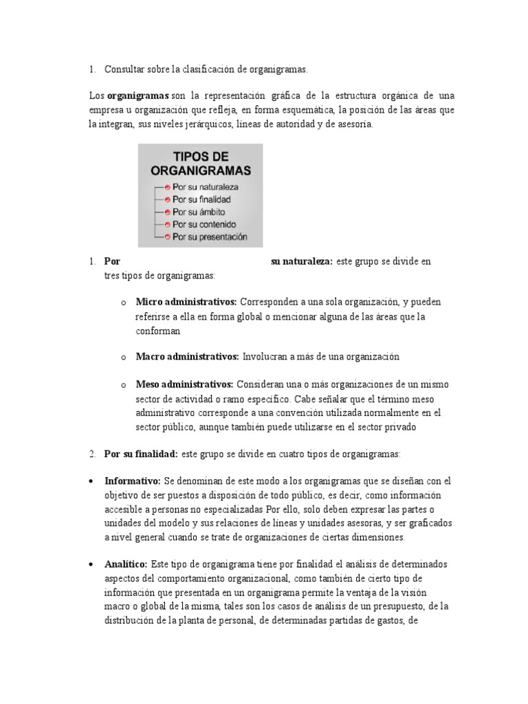 Analítico: Este tipo de organigrama tiene por finalidad el análisis de determinados
