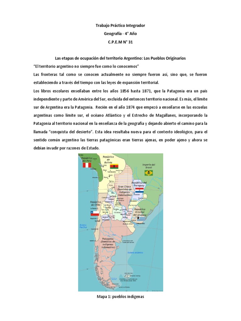 2- En un mapa de Argentina identificar con un color los territorios indígenas y con otro color