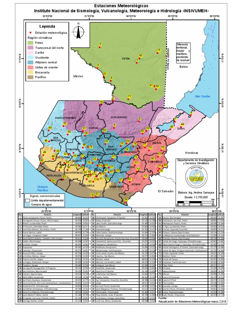 21 INSIVUMEH, Guatemala -90.533 14.586 50 Poptún, Petén -89.410 16.326 79 Caserio El Duraznal -89.374 14.512