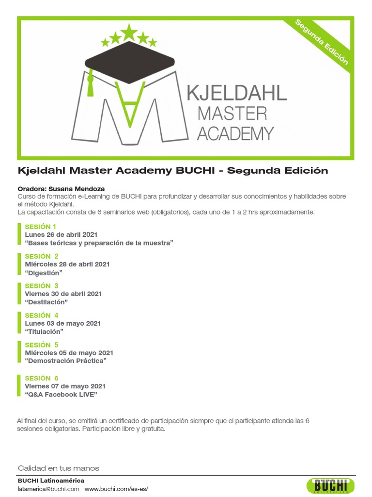 El curso de capacitación de Kjeldahl Master Academy - Segunda Edición se basa en 6 seminarios web obligatorios con