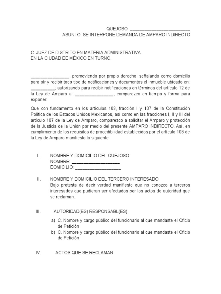 Por lo antes expuesto, solicito a usted Juez de Distrito: