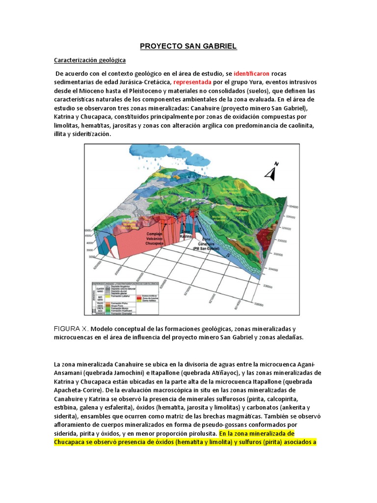 estudio se observaron tres zonas mineralizadas: Canahuire (proyecto minero San Gabriel),