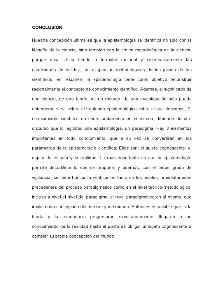 Nuestra concepción última es que la epistemología se identifica no solo con la