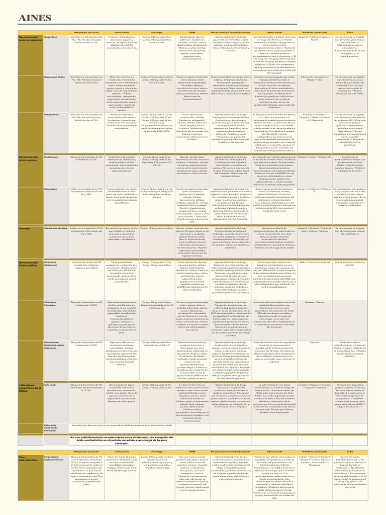 (Dipirona) odontalgias. Dolores hormigueo de cara y aguda o crónica, úlcera duodenal guarfarina). El alcohol potencia la COX-3. // Ligero relajante de