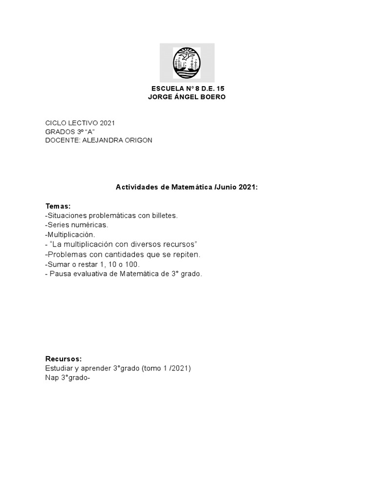 Actividades de Matemática /Junio 2021: