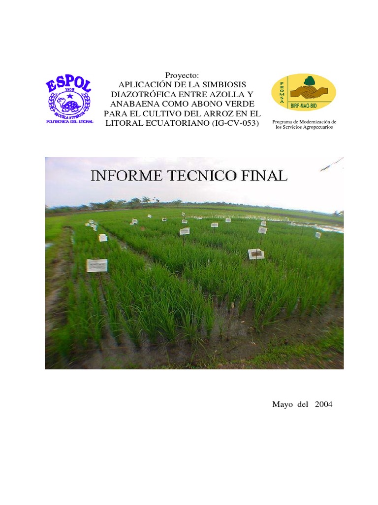 Proyecto Azolla-Anabaena. Informe Técnico Final 2