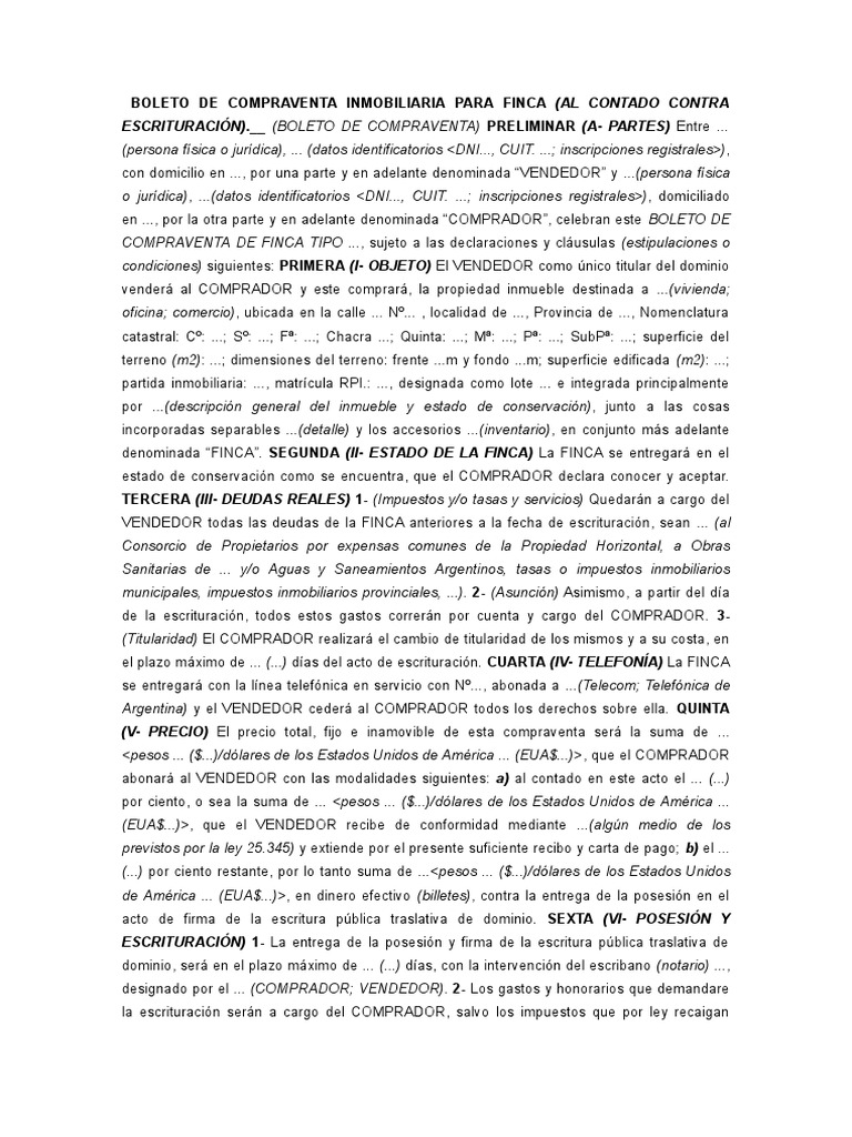 BOLETO DE COMPRAVENTA INMOBILIARIA PARA FINCA (AL CONTADO CONTRA